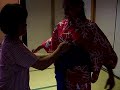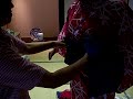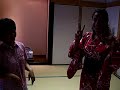 Description: para ir al ultimo dia del matsuri de Oita, Iliana y yo nos cambiamos a nuestra ropa tradicional. Iliana se compro su Yukata y aqui tenemos a la Sra. Kawano poniendo su Obi. Espero que mi mama lo vea bien para luego se lo ponga a Iliana cuando regrese. |
